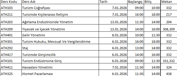 Turizm işletmeciliği 2025 Final Sınav Takvimi
